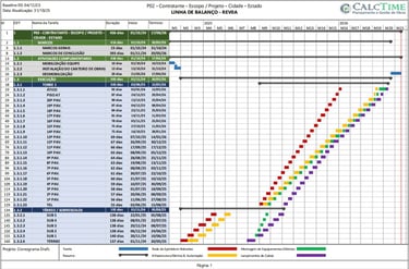 Cronograma de execução detalhado, sendo definidos os pacotes de entrega, por sistemas áreas ou pavimentos, definição do sequenciamento, prazos de execução e recursos das atividades;